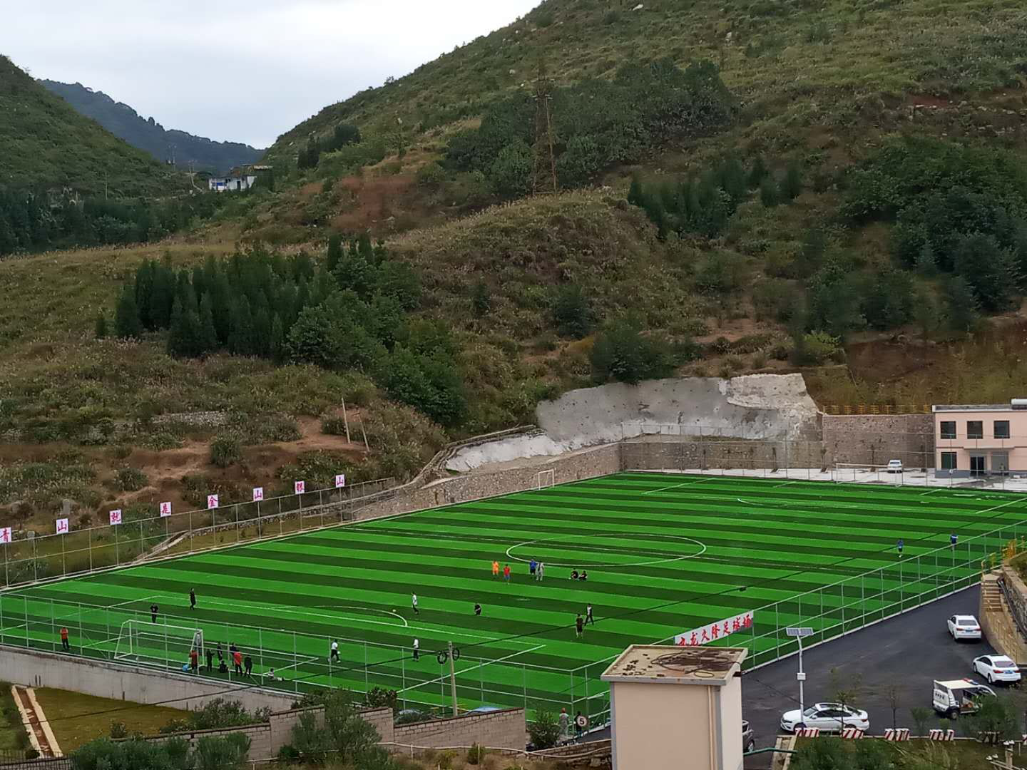 為積極響應(yīng)全民健身號召,普及推廣足球運動,根據(jù)縣委縣政府的總體規(guī)劃和部署,企業(yè)在原堆存鈣渣的渣庫位置規(guī)劃建設(shè)了用于11人制比賽的標準足球場,足球場建設(shè)項目于2020年4月21日開工,9月30日竣工,并于10月26日順利通過工程驗收。規(guī)劃整齊、綠意盎然的足球場成了員工積足球運動愛好者業(yè)余時間鍛煉身體的運動場,干凈整潔的道路、漫山遍野的油茶花以及灌木點綴的渣庫綠化也成了企業(yè)又一道亮麗的風景線。